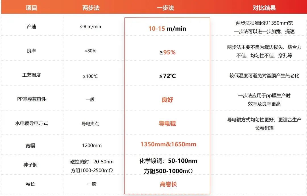 “一步式全濕法”復(fù)合銅箔制備工藝通過簡化傳統(tǒng)復(fù)合銅箔生產(chǎn)流程,用“一步式全濕法”取代“兩步法”或“三步法”,實(shí)現(xiàn)了工序的大幅度減少,極大降低綜合成本、提升生產(chǎn)效率和產(chǎn)品良率。