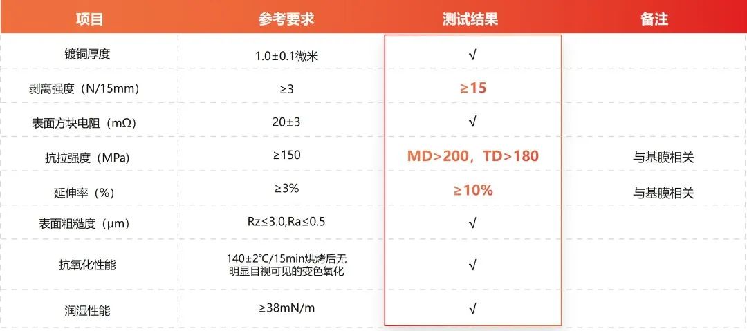 一步法復(fù)合銅箔主要性能指標(biāo)