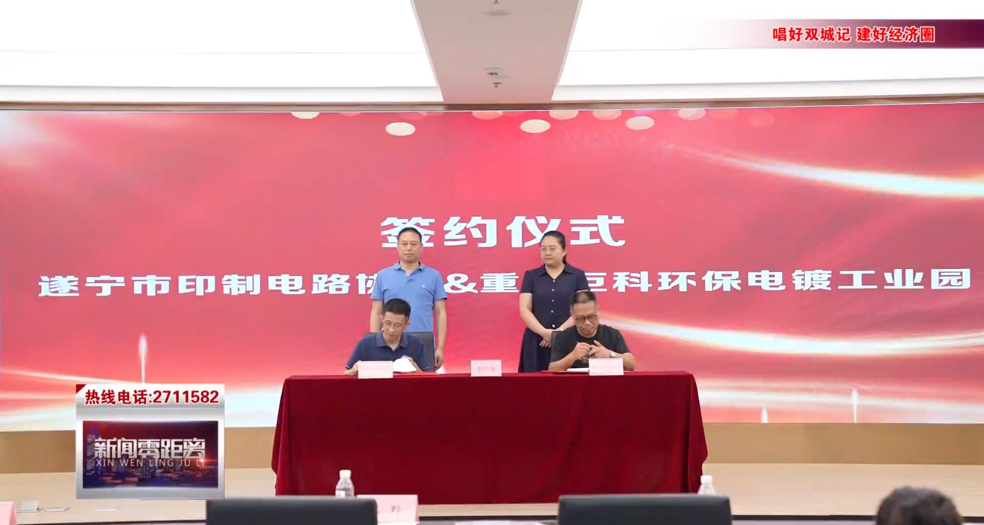 為進一步深化合作,共謀發(fā)展,遂寧印制電路板協(xié)會和潼南電鍍產(chǎn)業(yè)園區(qū)現(xiàn)場簽署戰(zhàn)略合作協(xié)議,遂寧印制電路板協(xié)會秘書長林濤、重慶巨科環(huán)保有限公司副總經(jīng)理、黨支部書記謝彬代表簽約,四川遂寧市市場監(jiān)督管理局副局長鄭玲、重慶潼南區(qū)市場監(jiān)督管理局副局長王野見證了儀式。
