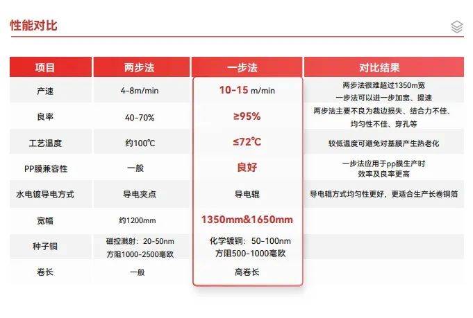 相較于市面復(fù)合銅箔制備工藝“兩步法”或“三步法”,此次“一步法”2.0設(shè)備的升級(jí),在原有生產(chǎn)流程簡(jiǎn)化的基礎(chǔ)上,更在產(chǎn)速、幅寬和良率上取得顯著提升,確保了產(chǎn)品品質(zhì),同時(shí)大幅降低了能耗和人力成本。