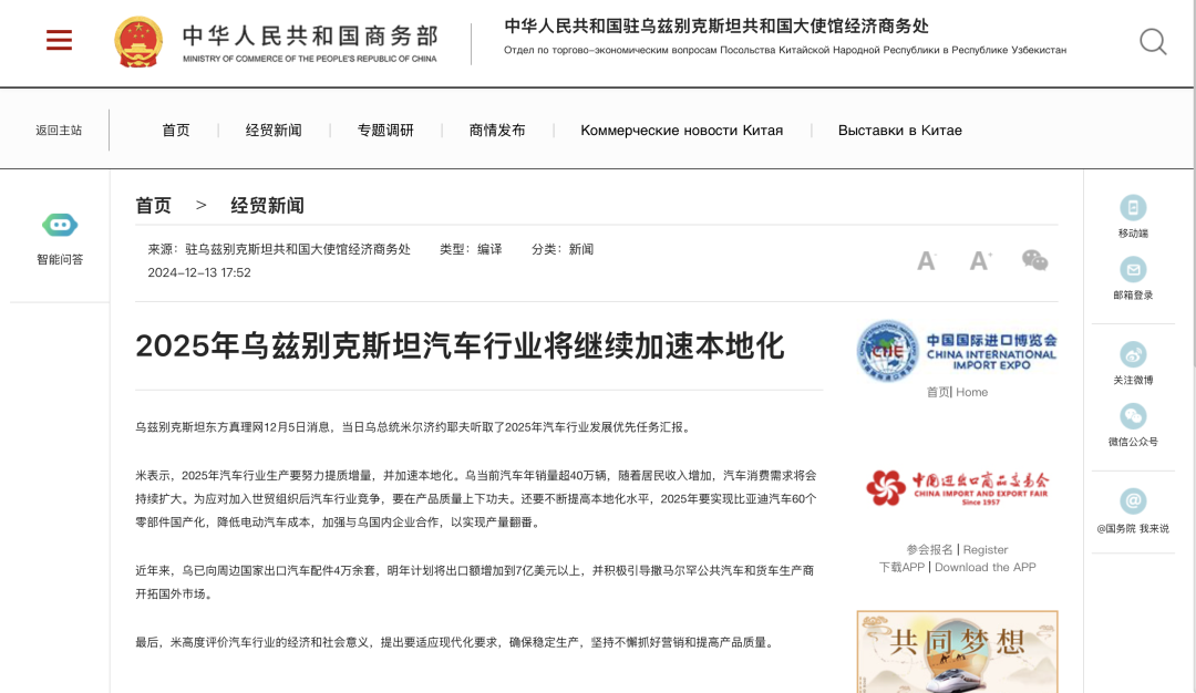 面對(duì)新能源轉(zhuǎn)型的需求,烏茲別克斯接軌中國(guó)電動(dòng)汽車標(biāo)準(zhǔn),并探索合資模式。