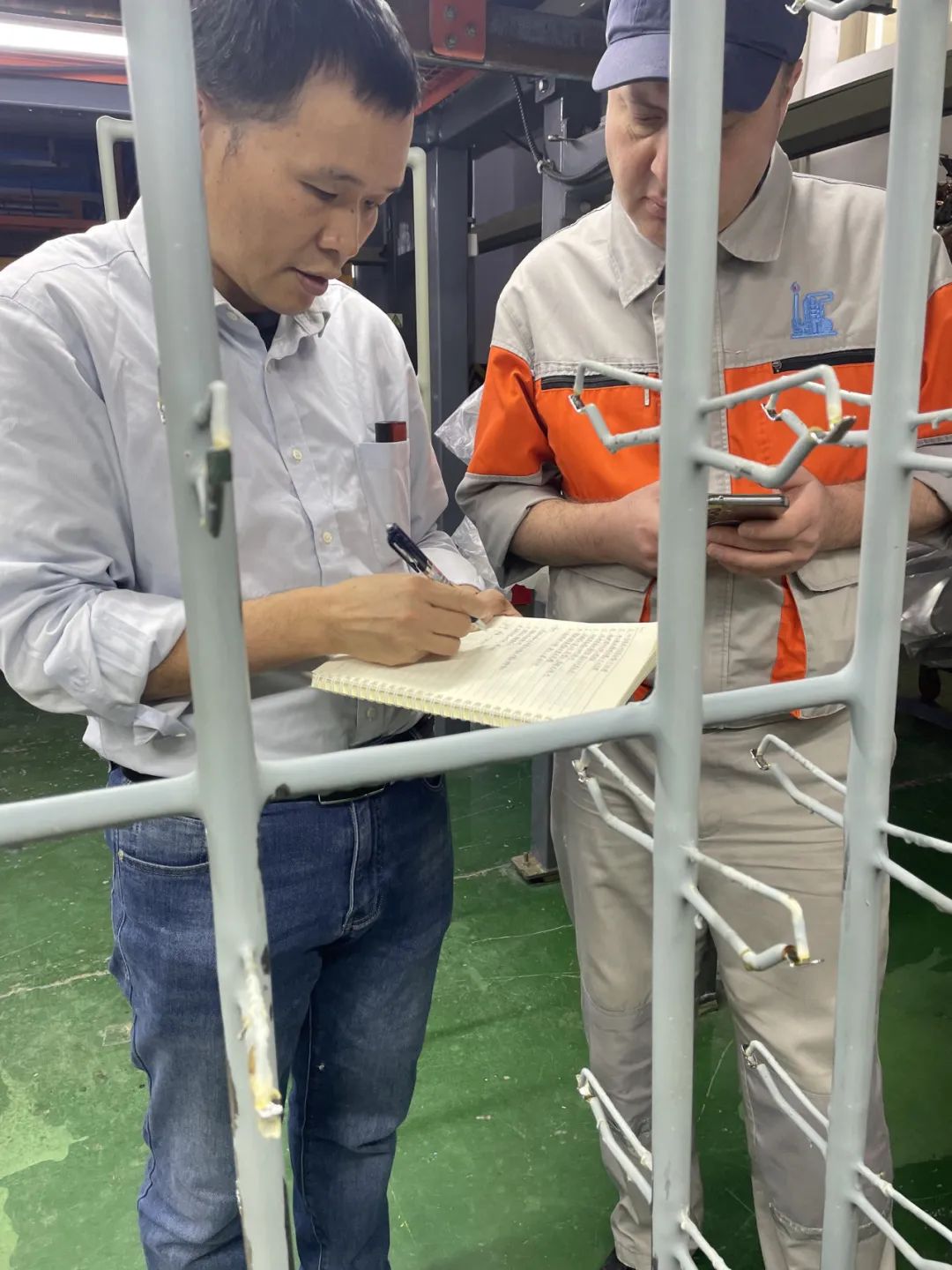 隨后,我司組建專項(xiàng)技術(shù)小組赴塔什干生產(chǎn)基地駐場(chǎng)。小組成員扎根現(xiàn)場(chǎng),針對(duì)現(xiàn)有產(chǎn)線痛點(diǎn)精準(zhǔn)施策,全力實(shí)施技術(shù)賦能,逐一攻克實(shí)際技術(shù)難題。