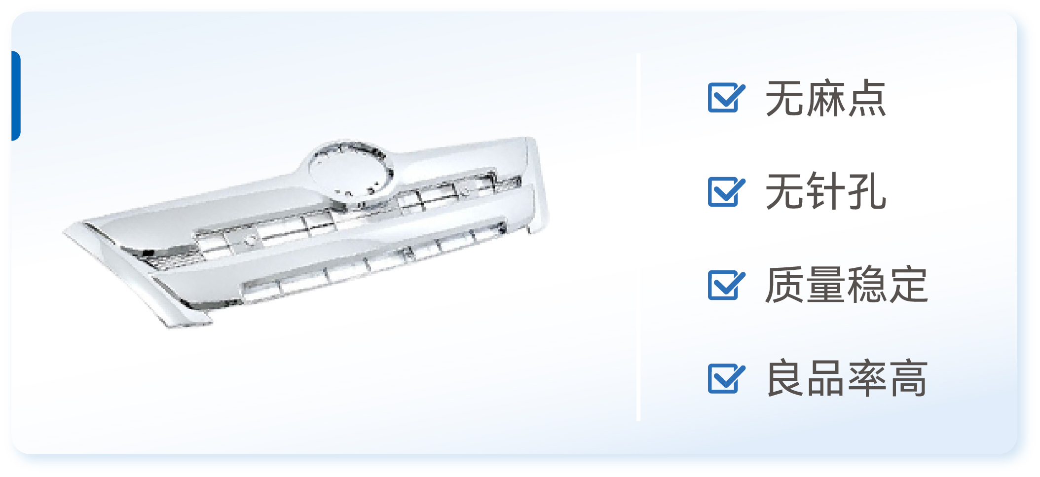 工藝環(huán)保:鍍鉻添加劑采用三價(jià)鉻鍍鉻,替代六價(jià)鉻工藝,無(wú)/低磷,不含PFOS鉻霧抑制劑