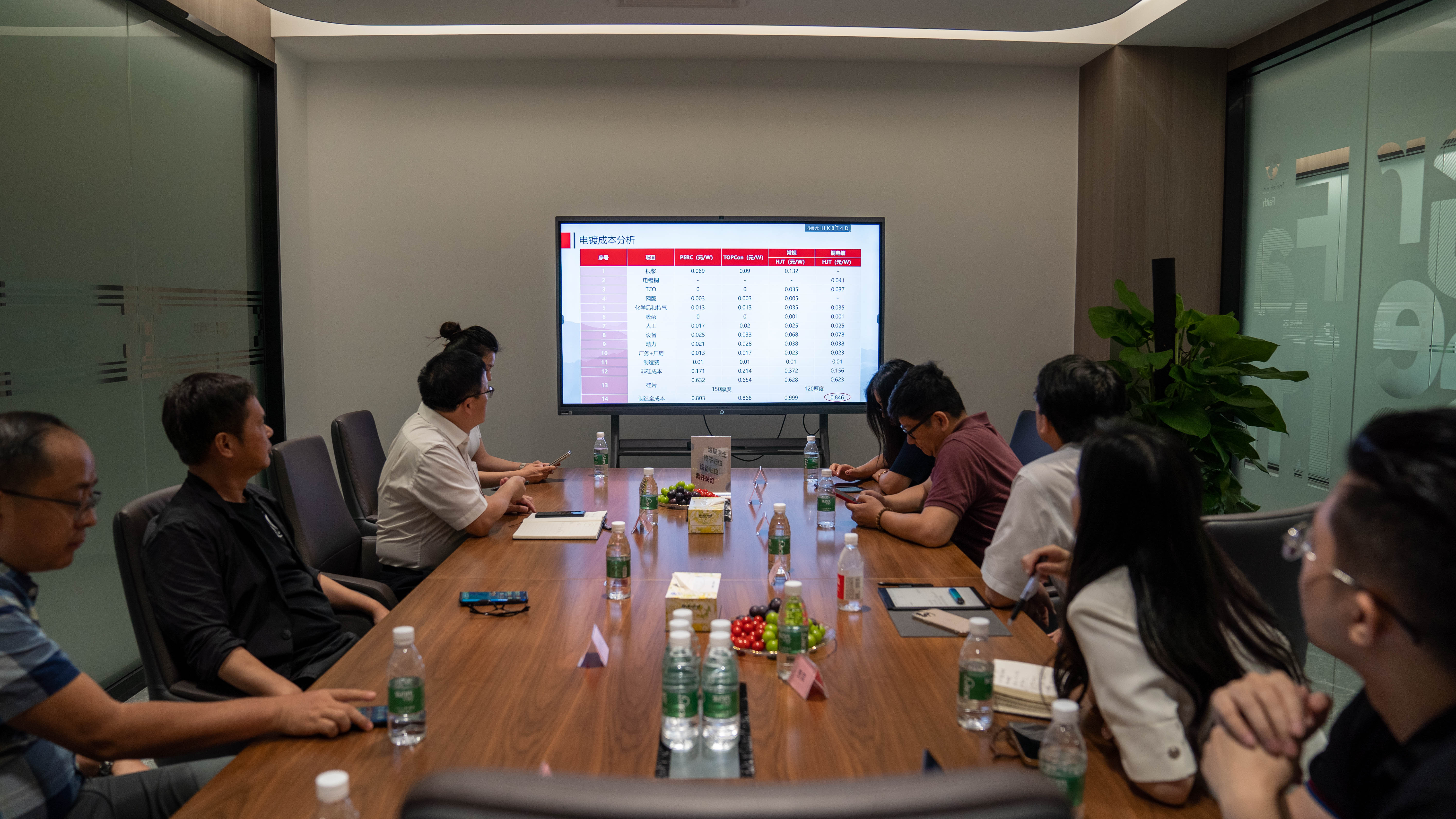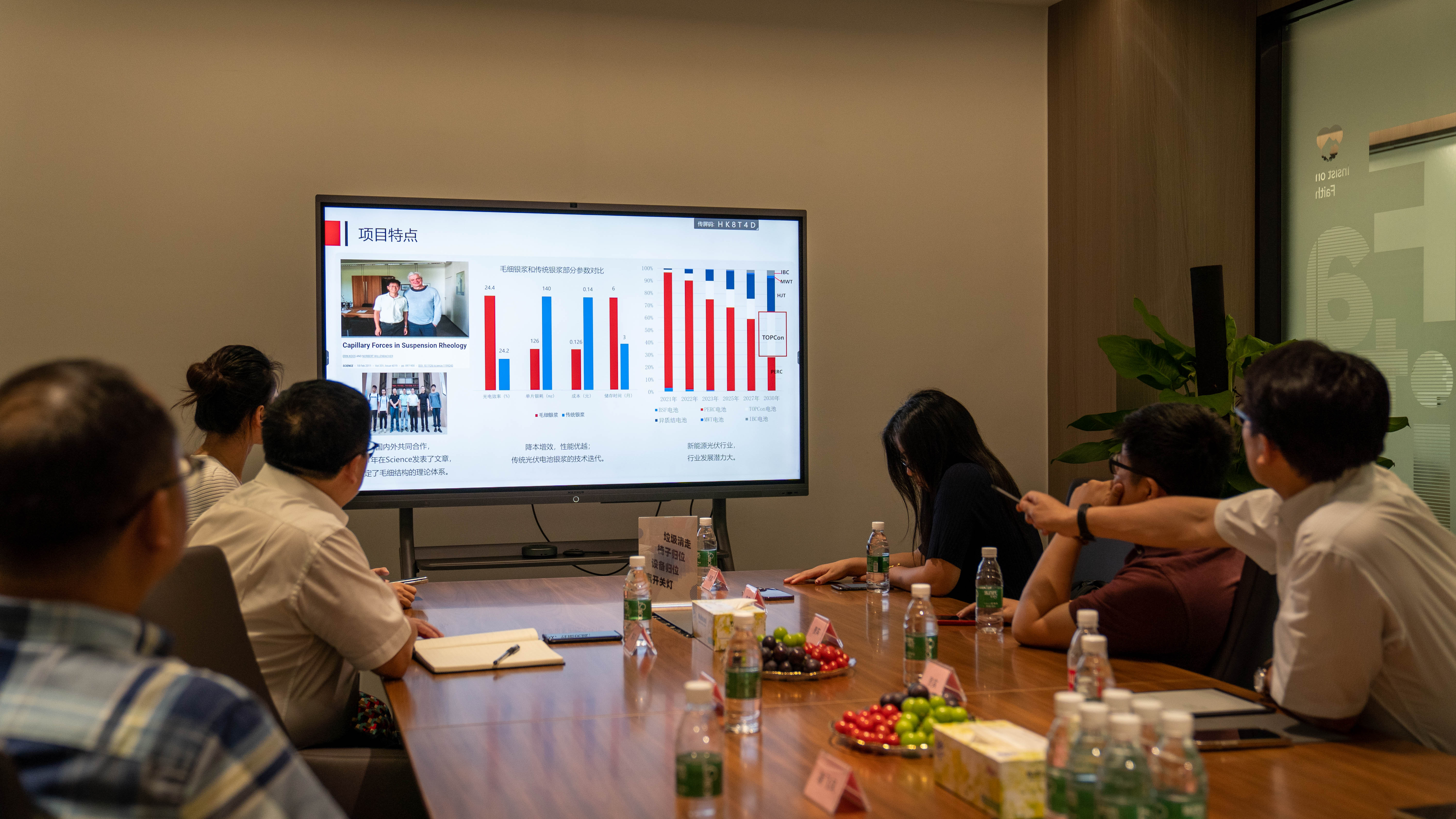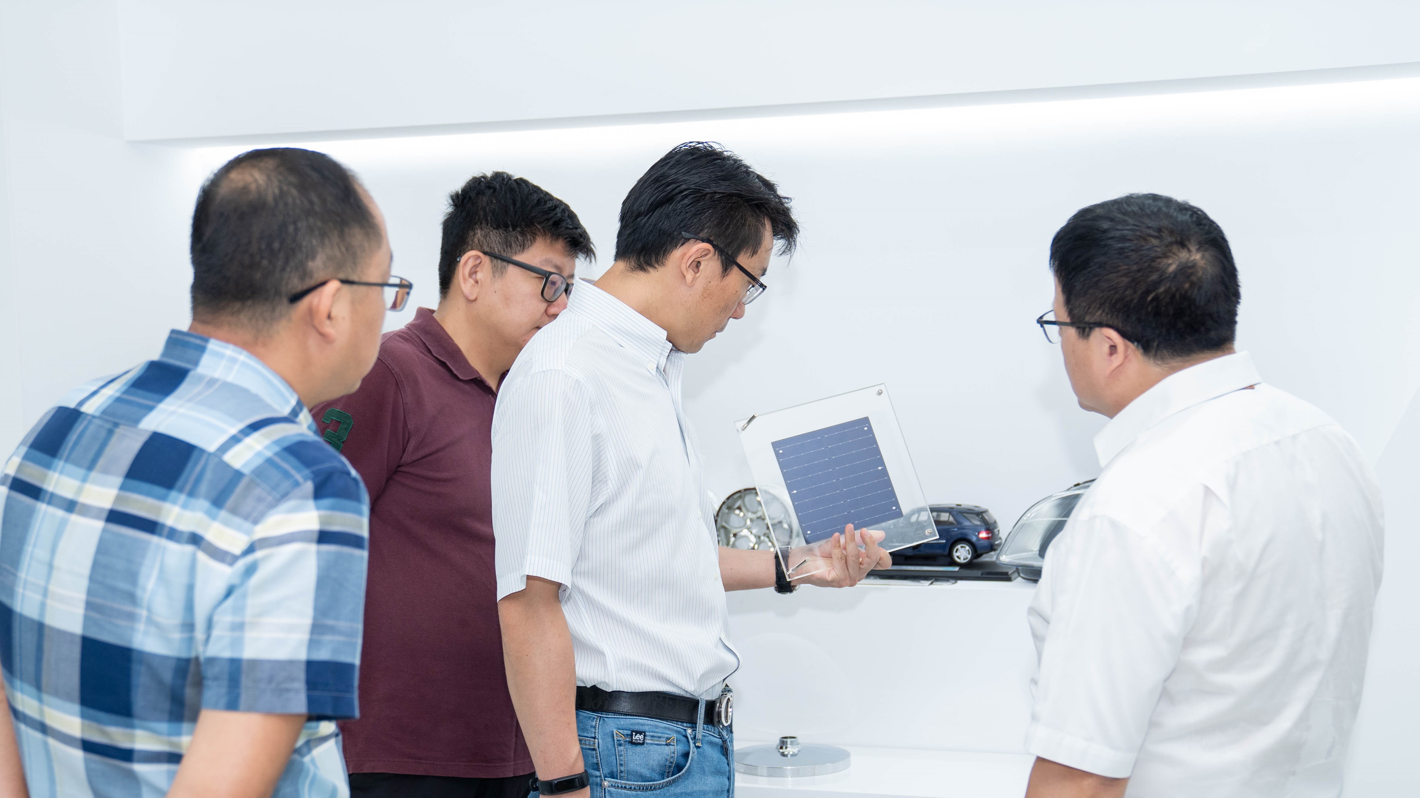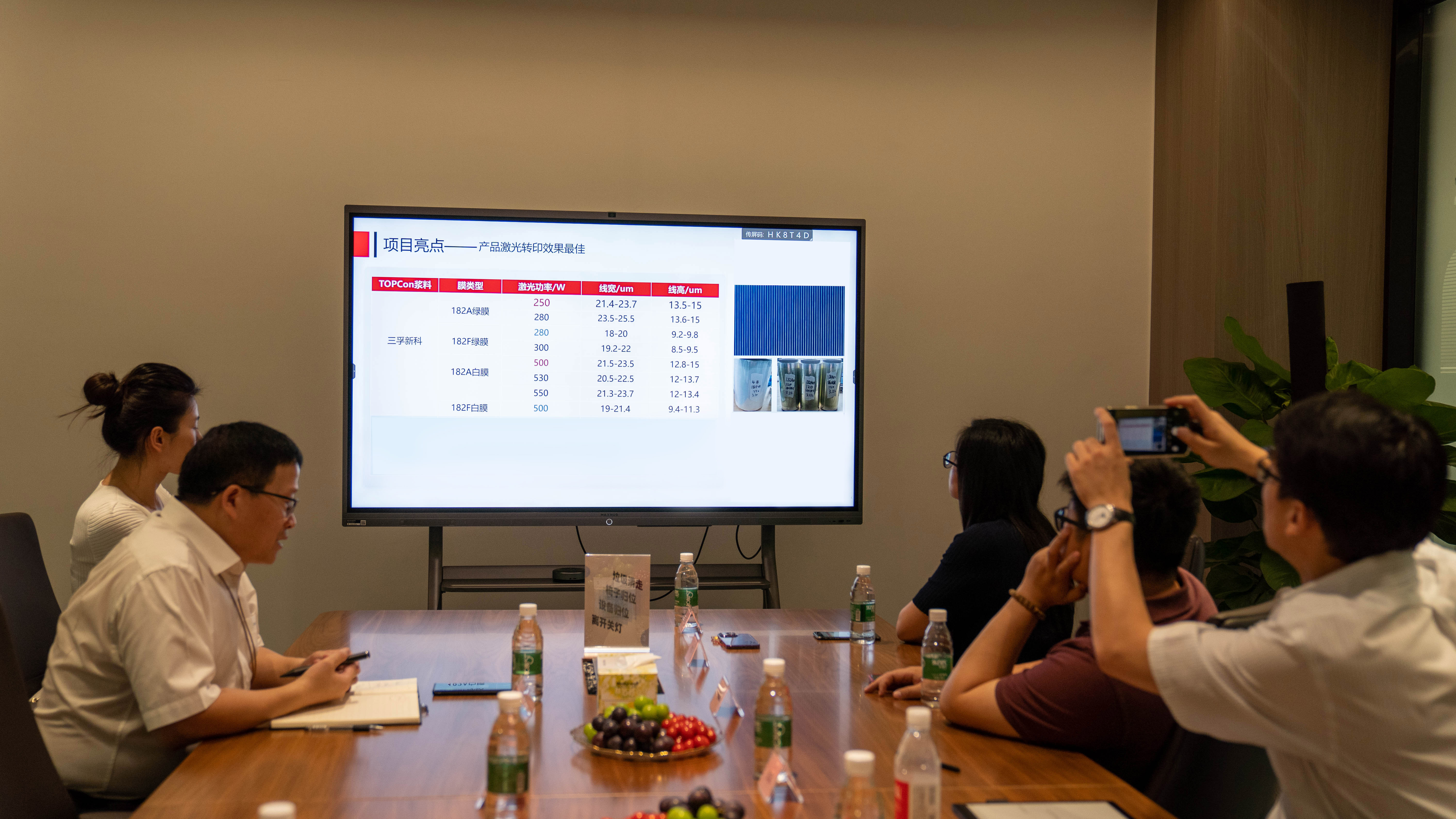在三孚新科人員的陪同下,中國光伏行業(yè)協(xié)會(huì)一行參觀三孚新科數(shù)字展示中心及三孚研究院,詳細(xì)了解企業(yè)發(fā)展歷程、產(chǎn)品研發(fā)及產(chǎn)業(yè)化、以及企業(yè)的未來發(fā)展愿景等情況。在隨后召開的座談會(huì)上,雙方就光伏領(lǐng)域表面工程技術(shù)的發(fā)展趨勢、三孚新科新型太陽能電池銀漿及銅電鍍技術(shù)和產(chǎn)業(yè)化應(yīng)用等問題展開深入的探討及友好的交流。
