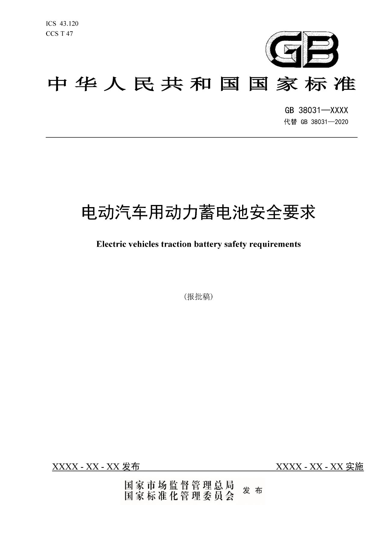 新版標準將代替GB 38031—2020《電動汽車用動力蓄電池安全要求》。