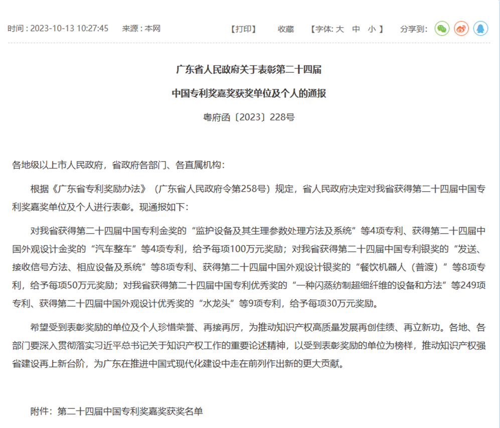 中國(guó)專利獎(jiǎng)由國(guó)家知識(shí)產(chǎn)權(quán)局與世界知識(shí)產(chǎn)權(quán)組織聯(lián)合設(shè)立,是含金量最高的知識(shí)產(chǎn)權(quán)部門獎(jiǎng)項(xiàng),也是國(guó)內(nèi)知識(shí)產(chǎn)權(quán)界的最高榮譽(yù)。自1989年起至今已成功舉辦二十四屆。