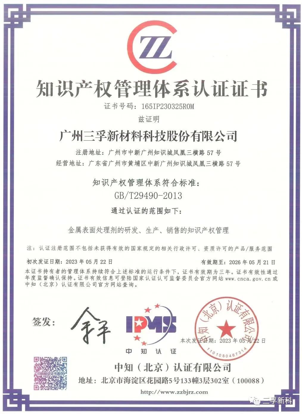 在今年5月,三孚新科獲批知識(shí)產(chǎn)權(quán)管理體系證書(shū)。這也為公司進(jìn)一步強(qiáng)化知識(shí)產(chǎn)權(quán)管理、規(guī)范和保護(hù)能力,打造知識(shí)產(chǎn)權(quán)強(qiáng)企,實(shí)現(xiàn)以“知產(chǎn)”武裝企業(yè)的目標(biāo),奠定了堅(jiān)實(shí)的基礎(chǔ)。